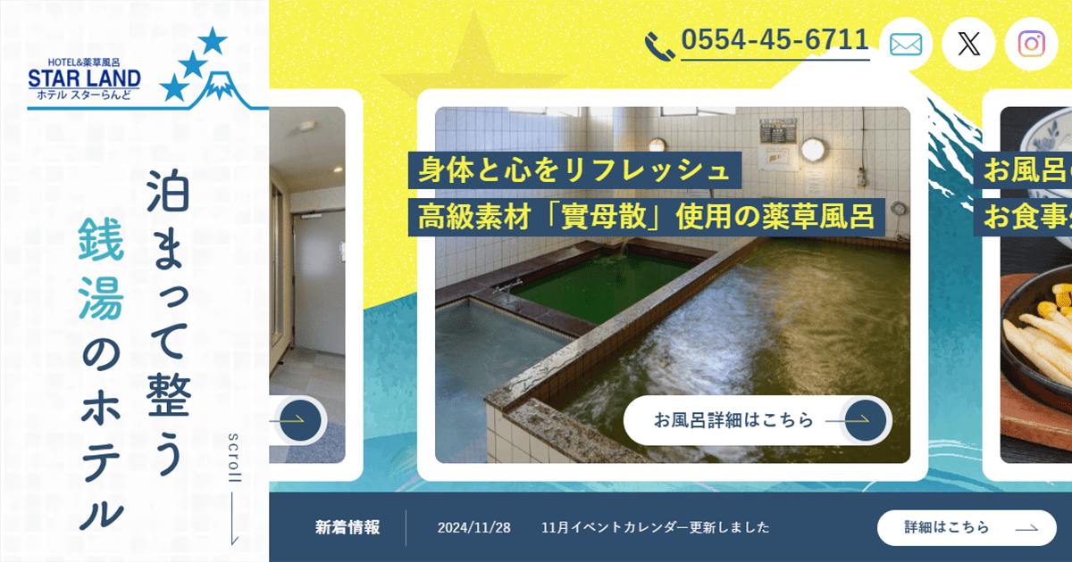 山梨県都留市内にある老舗スーパー銭湯・ビジネスホテルです。